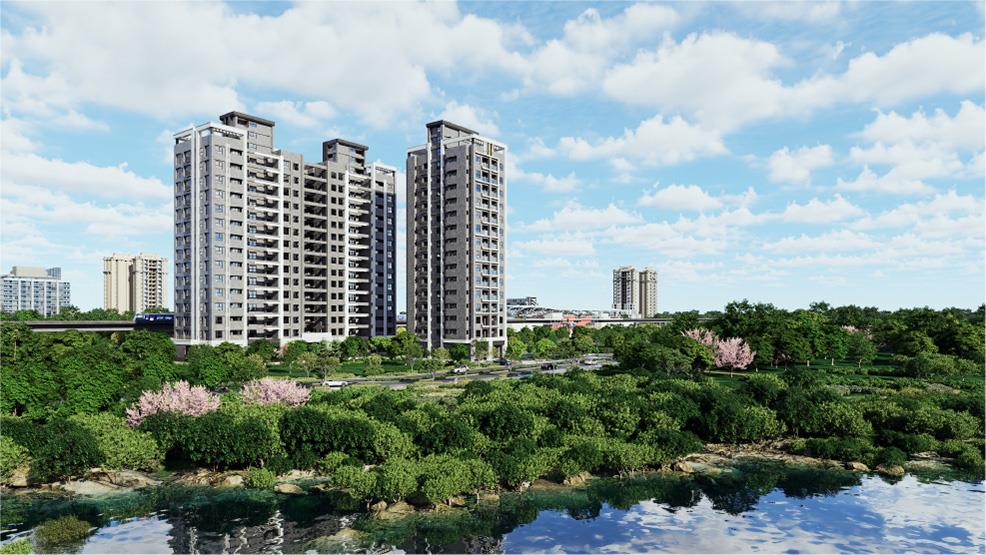 坐擁老街溪首排水岸景觀,以「田園住宅綠社區」為藍圖,共享 8 座公園的自然資源,右腳通市區,左腳踏綠意,【鴻廣川湛】有水,有綠,有未來,到站即達幸福人生!